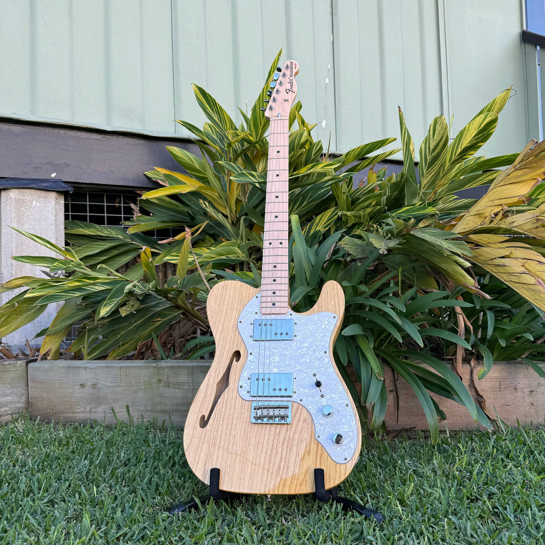 This 2018-2019 Made in Mexico model is made up of a super lightweight semi-hollow Ash body with an F-Hole, a Maple neck and fretboard with 21 frets and 2 Fender humbuckers with volume and tone controls, plus a 3-way switch.
