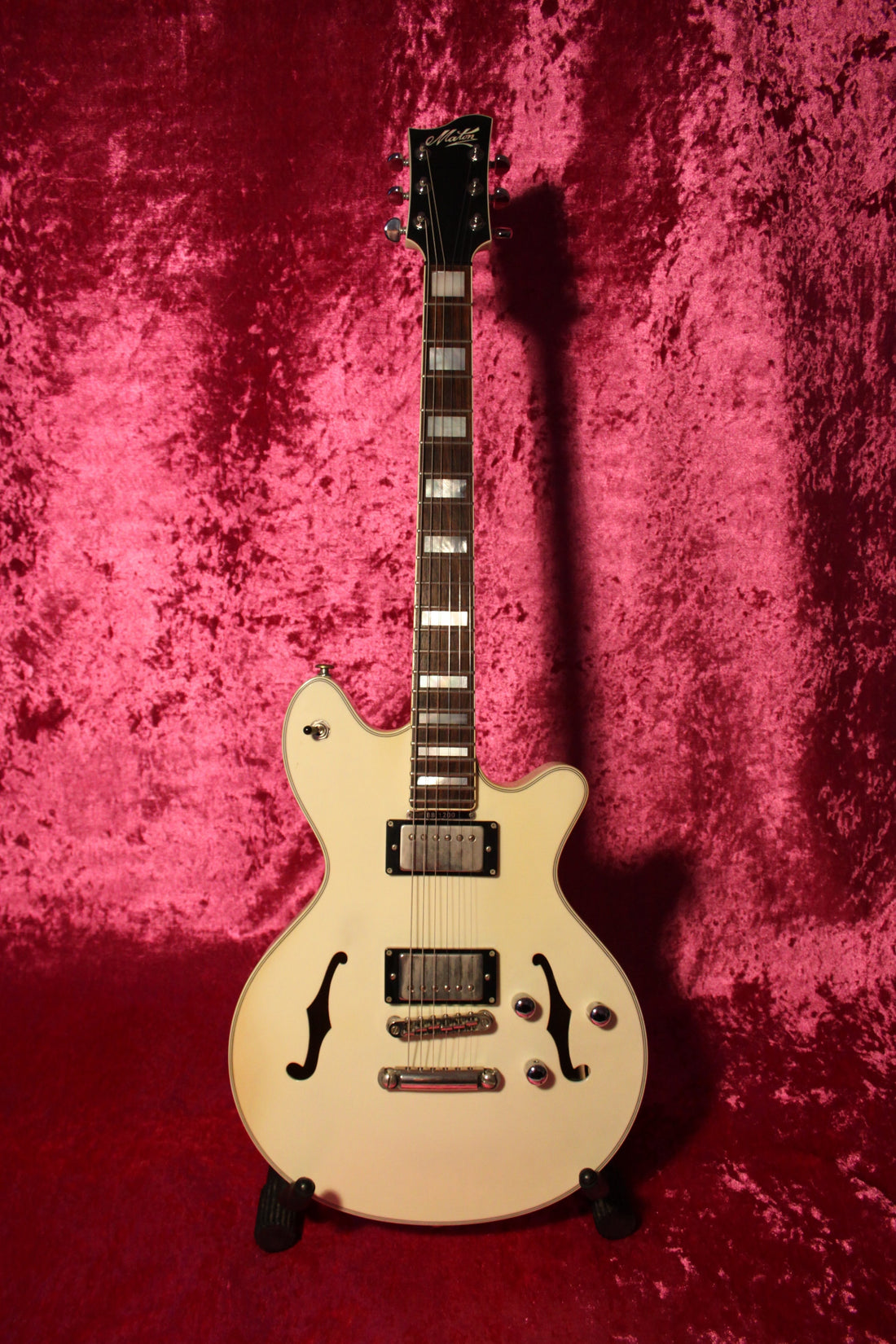 This all-Australian Maton is a fantastic and versatile semi-hollow guitar. Able to produce excellent tones for warm jazz, blues, country, and all the way to overdriven treble bleeding desert rock. This model of guitar would later be turned into Josh Hommes' Signature guitar, with the key difference being a trapeze-style tail bridge, inlays, and different pickups.
