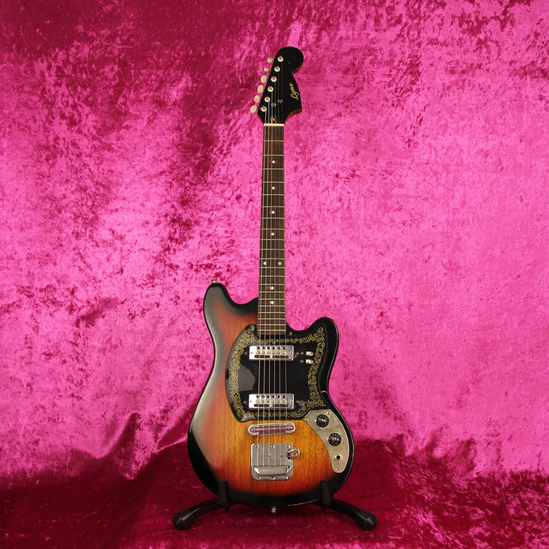 This 1960-67 Teisco Lynx Mustang style guitar is full of character, features a super lightweight, thin body, 16" radius, and shorter scale length.