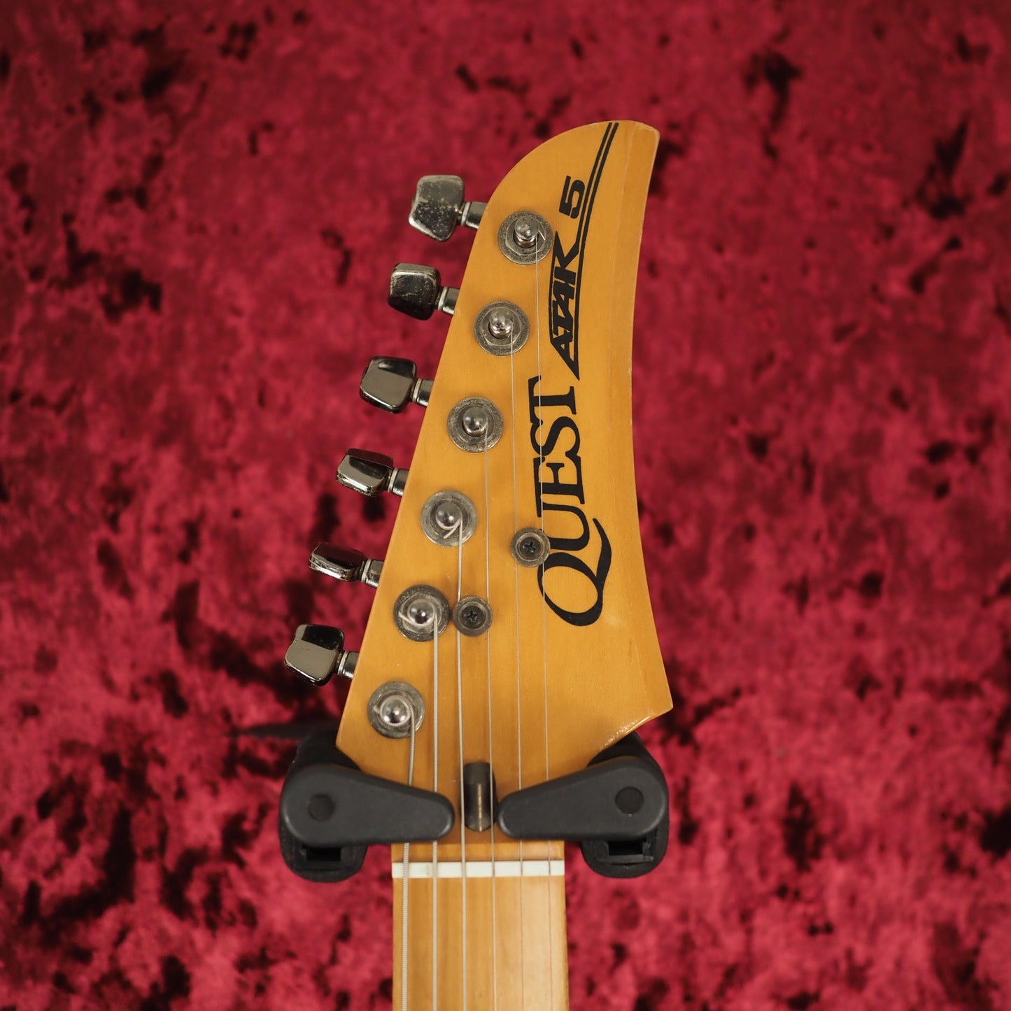 The Quest Atak 5 of 1984 stands out for its bold design, quality Japanese craftsmanship, and flexible humbucker-driven tone. With its dual humbuckers, push/pull tone control, and striking finish options, it offers both aesthetic flair and sonic versatility. Wonderful for vintage metal, rock, and alternative players.