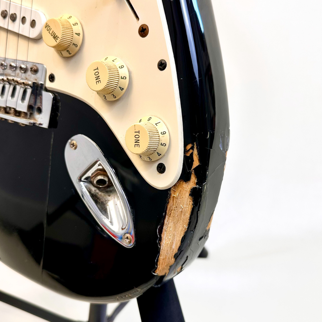1995 Fender Squier Series Stratocaster Electric Guitar in Black