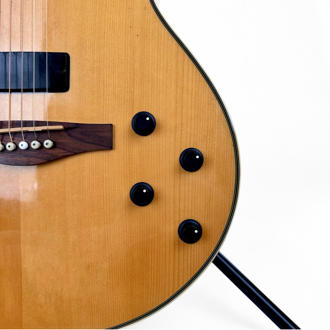 The Ibanez Montage MSC350NT is a compact hollow body acoustic electric guitar designed for comfortable playability and warm, articulate tone. Its spruce top, slim neck profile and built in Ibanez preamp make it well-suited to fingerstyle, jazz and unplugged amplified settings. A distinctive alternative to standard acoustics, it delivers a focused sound with a modern feel in a unique single-cut design.