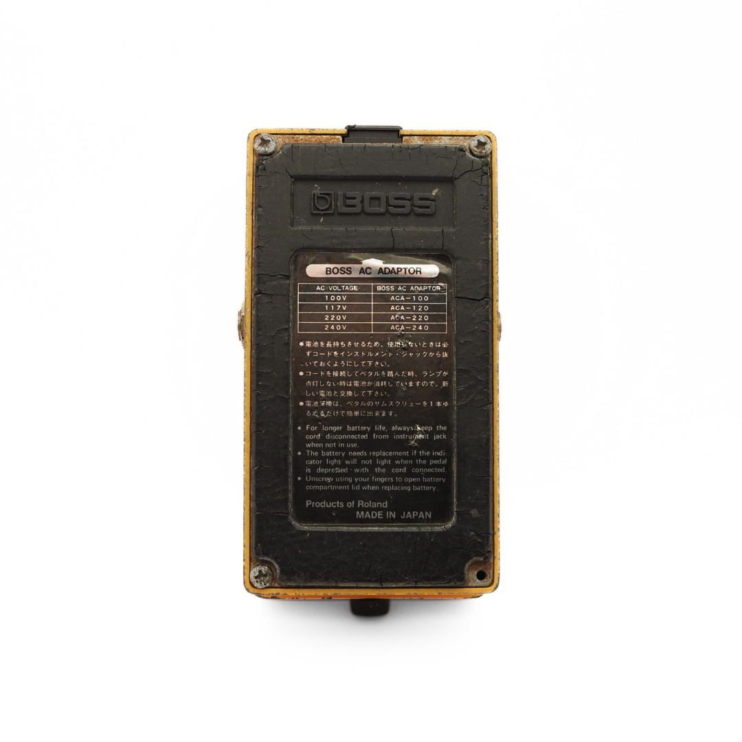 The BOSS DF-2 Super Distortion and Feedbacker Black Label MIJ is a Japanese-made analogue effects pedal that combines classic BOSS distortion circuitry with a dedicated momentary feedback circuit for controllable, musical sustain. Built during the highly regarded Made in Japan era, it delivers gritty crunch, saturated lead tones, and expressive harmonic feedback at practical volume levels. Black label MIJ DF-2 pedals are sought after for their short production run, robust construction, and distinctive late 1980s BOSS analogue character.