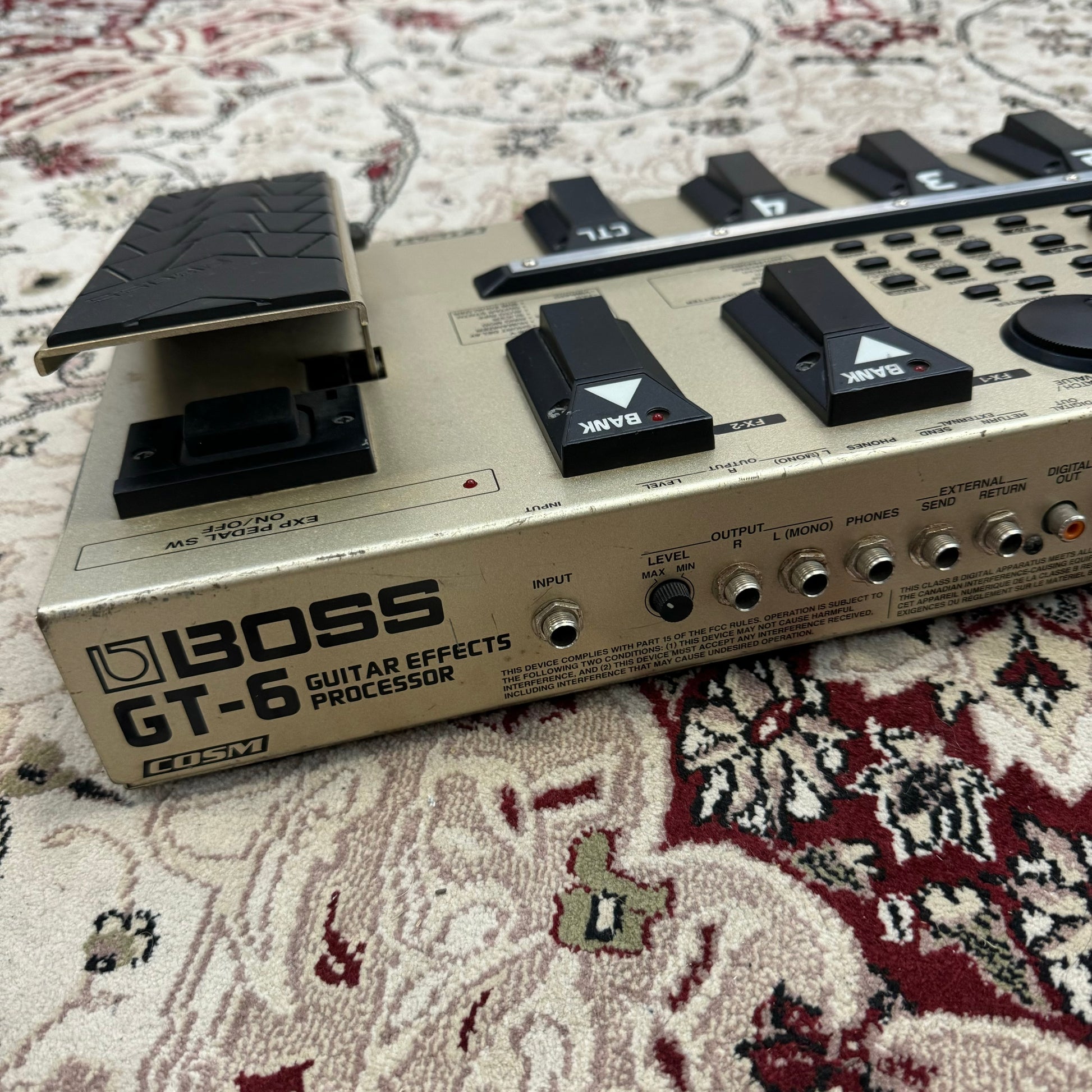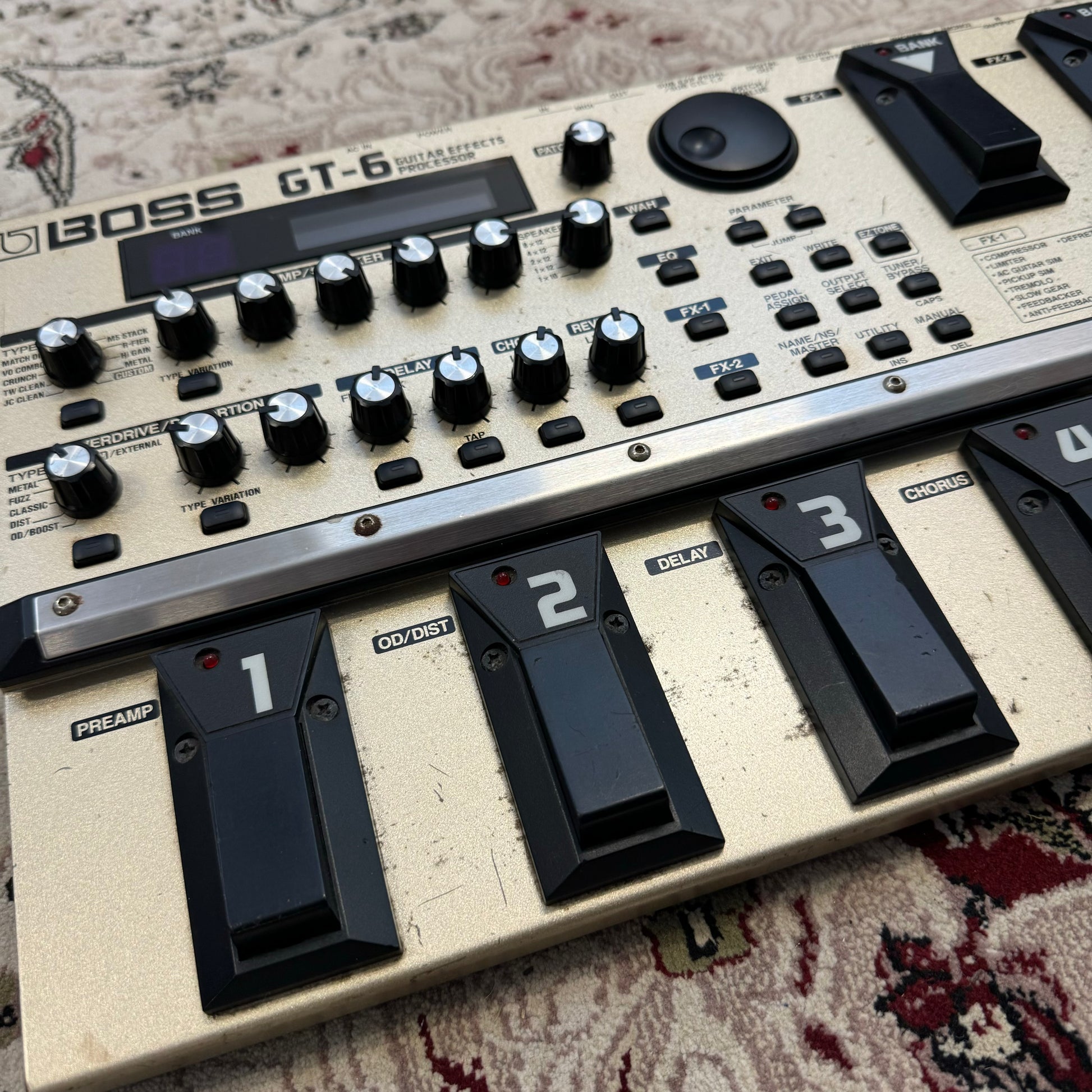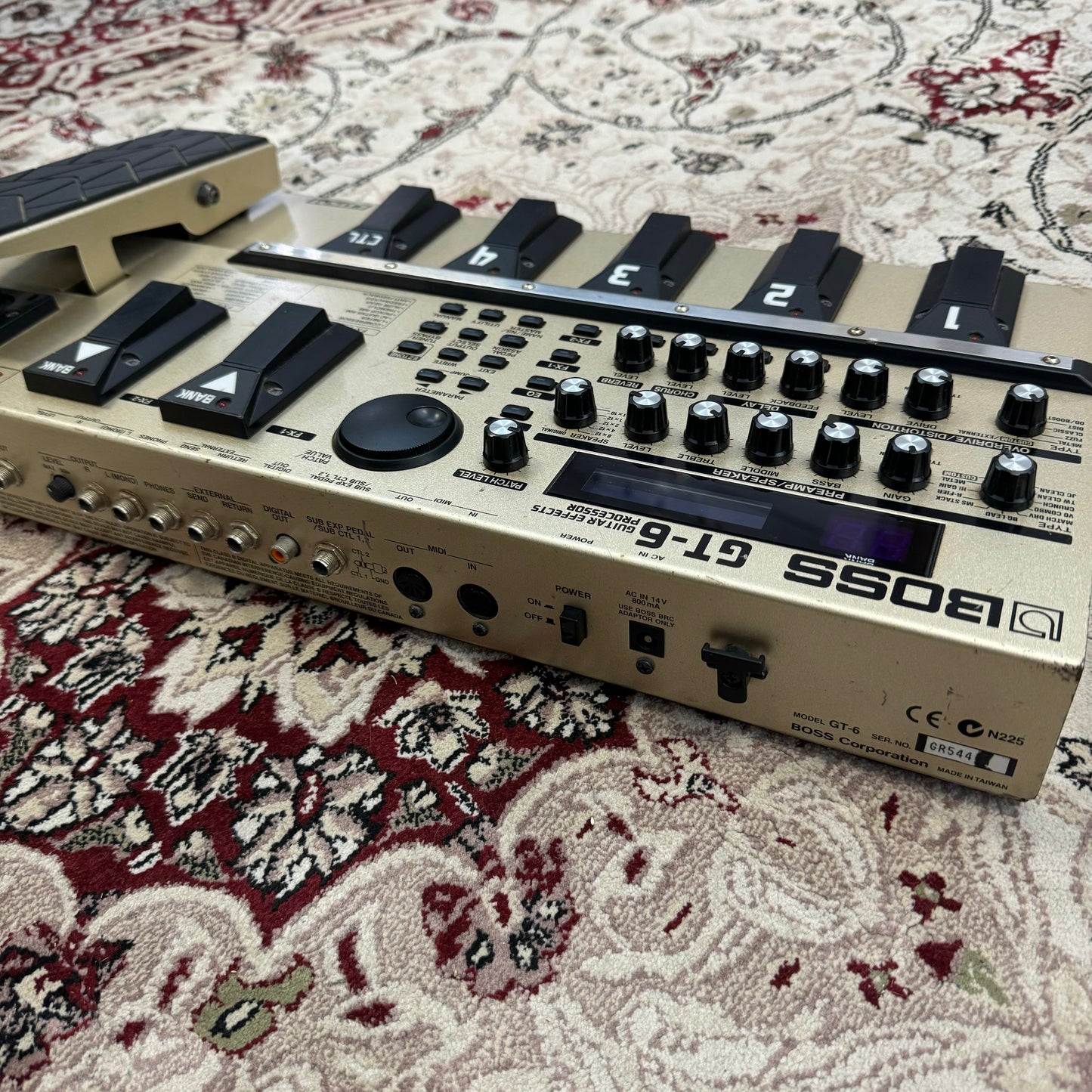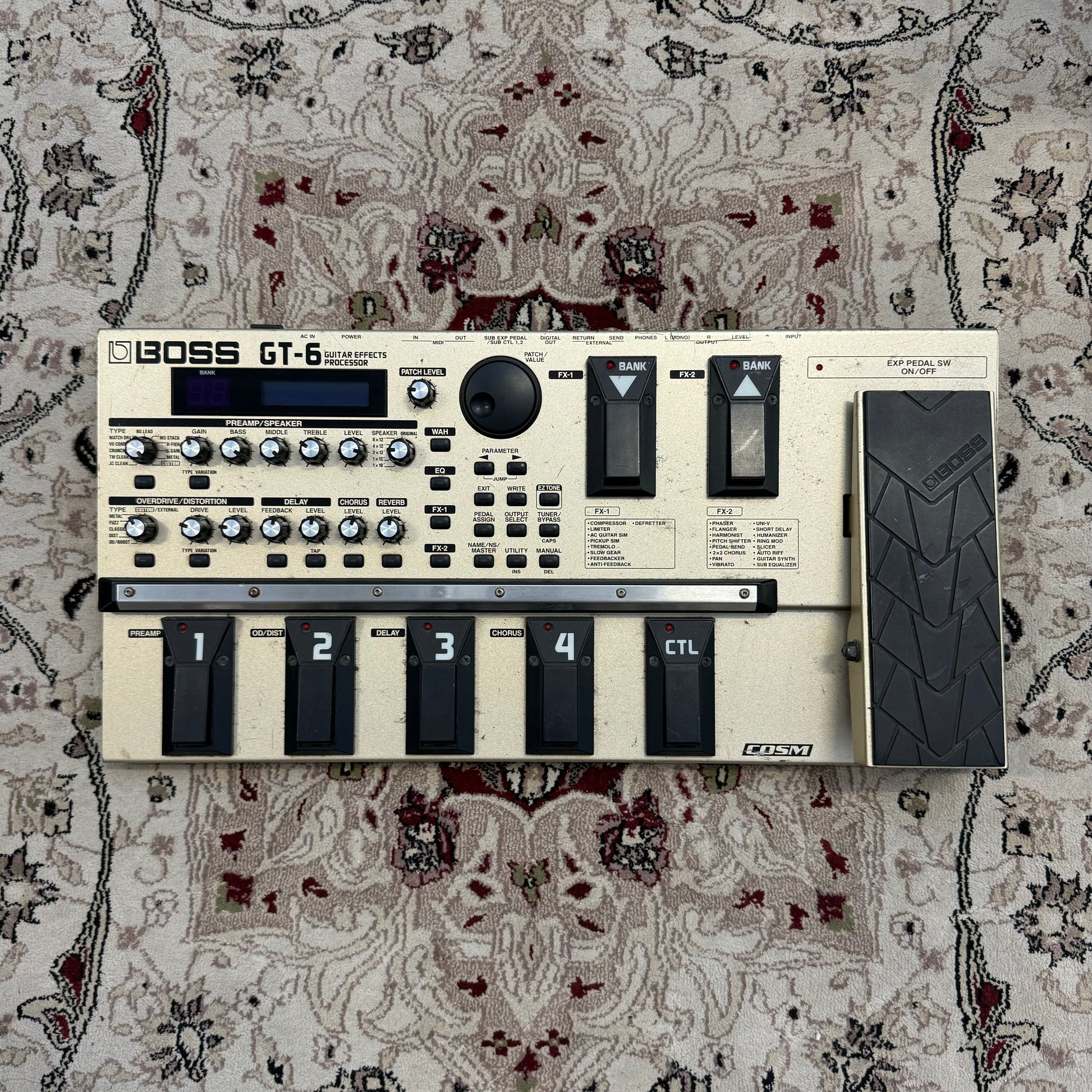 The BOSS GT‑6 is a gold-standard multi-effects floorboard loaded with COSM amp and stomp modelling, 24-bit audio, and intuitive control with real-time expression pedals. Whether using presets or creating custom tones, it delivers studio-grade sound and live-proof build quality, with advanced features still prized long after its retirement.