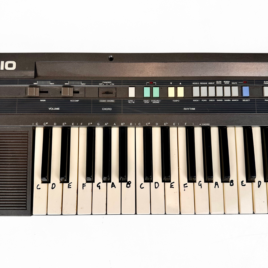 - 49-key full-size keyboard (Casiotone-style). Compact layout but playable with standard piano fingering.