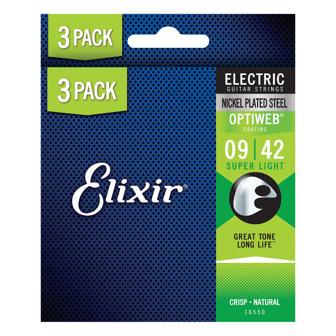 Elixir E16550 9-42 Optiweb Nickel Plated Steel Electric Guitar Strings (3 Pack)