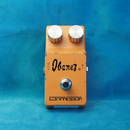 - Compact narrow-box metal enclosure, early Ibanez “script” logo
