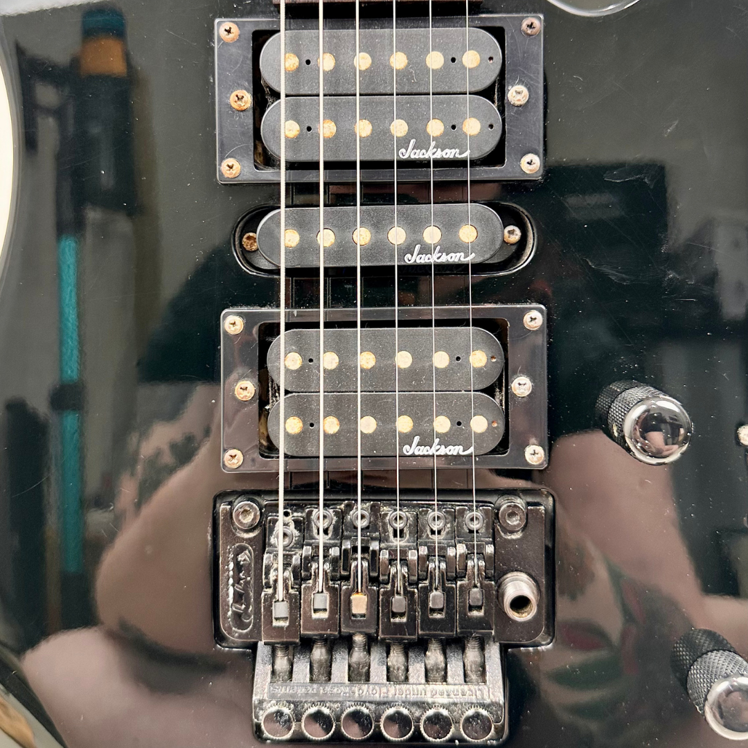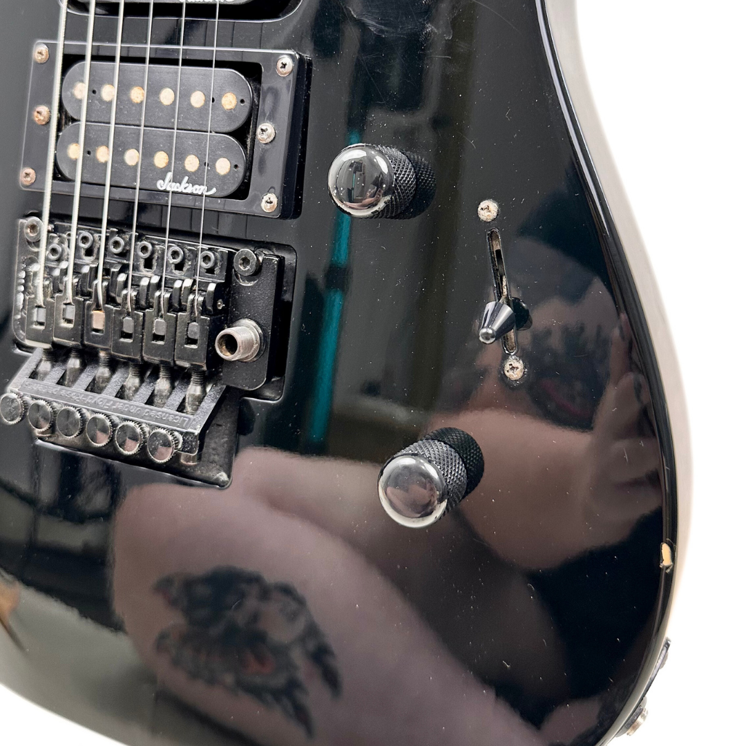 The Jackson Performer PS-4 Electric Guitar (Black) combines classic 90s metal styling with the playability and precision for which Jackson is known. Built during the mid-to-late 1990s, it features the fast Dinky-style body, H-S-H pickup layout, and Floyd Rose-licensed tremolo that defined Jackson’s shred era.