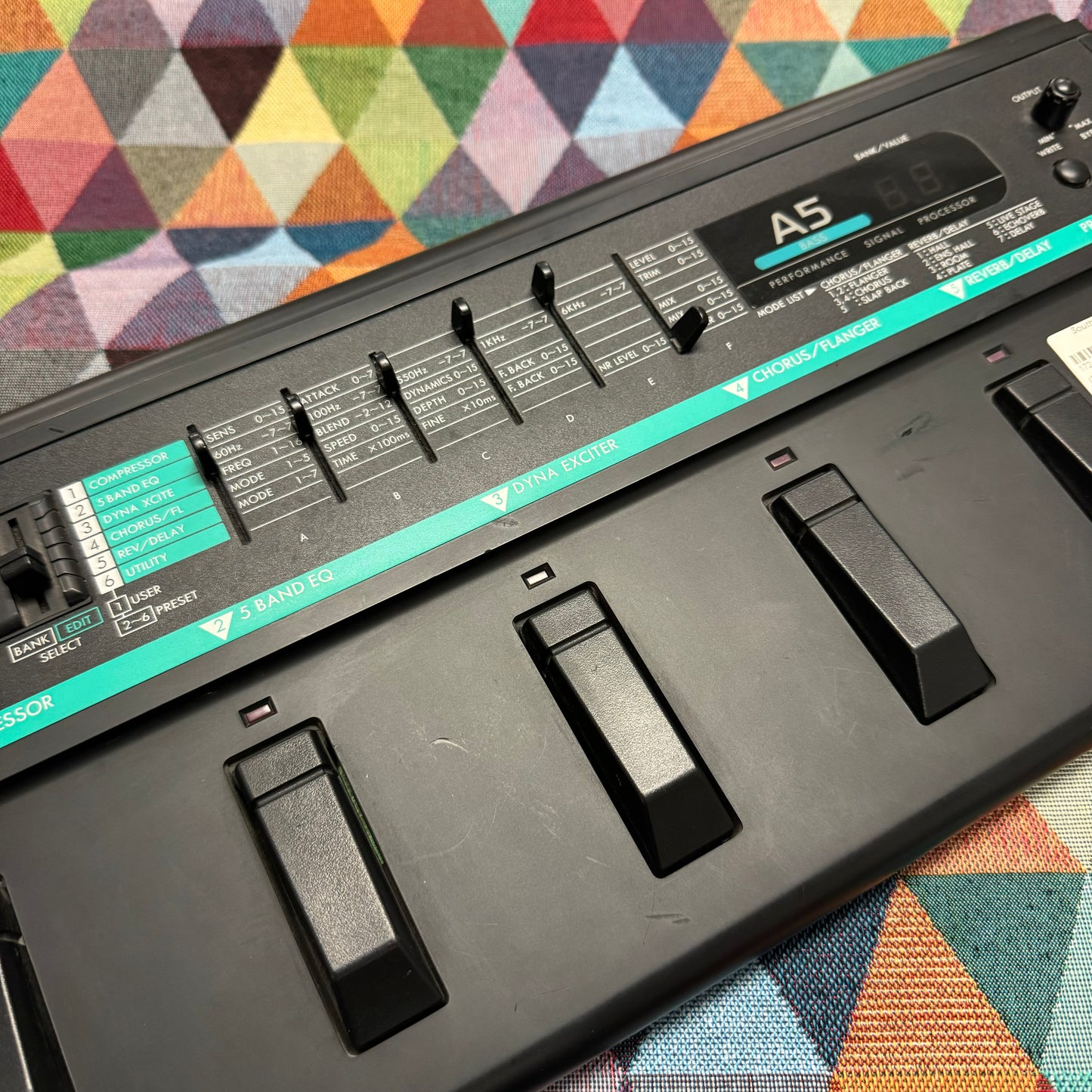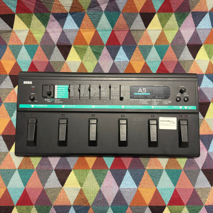 The Korg A5 Bass Multi‑Effects Pedal delivers classic 80s digital processing with five chained effects designed specifically for bass, including compression, EQ, chorus, and delay. Ideal for bassists wanting quick access to punchy, versatile tones in a rugged, all-in-one unit that blends vintage character with live-ready simplicity.