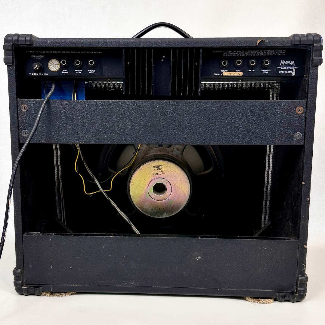 The Orbit MG60RC (aka Samick SM-60RC) is a 60-watt solid-state combo amp boasting a single 12-inch speaker and built-in effects like overdrive, chorus, and reverb. Perfect for players who want a versatile practice amp or jam amp with classic 1×12 tone, built ruggedly in the Samick factory in Korea. Great build, good value.