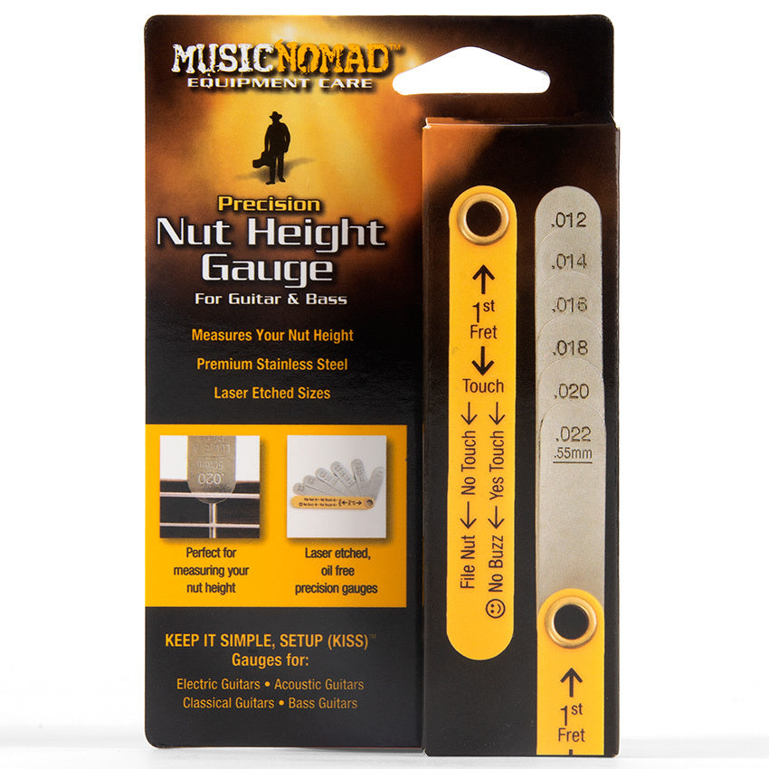 Being able to measure your string height at the nut is a critical step in the setup process. Music Nomad's precision Nut Height Gauge will help you do it quickly & accurately.