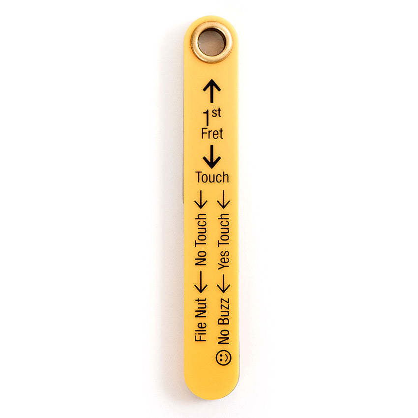 The gauge comes equipped with the 3 most common nut height sizes (.016", .018", .020") plus 3 additional sizes (.012", .014", .022") to accommodate a desire for lower action or a heavier pick attack. Instructions printed right on the handle make it extremely easy to dial in your nut height. It's perfect for electric, acoustic, classical & bass guitars & features laser etched markings that take the guesswork out of which gauge to use for each instrument.