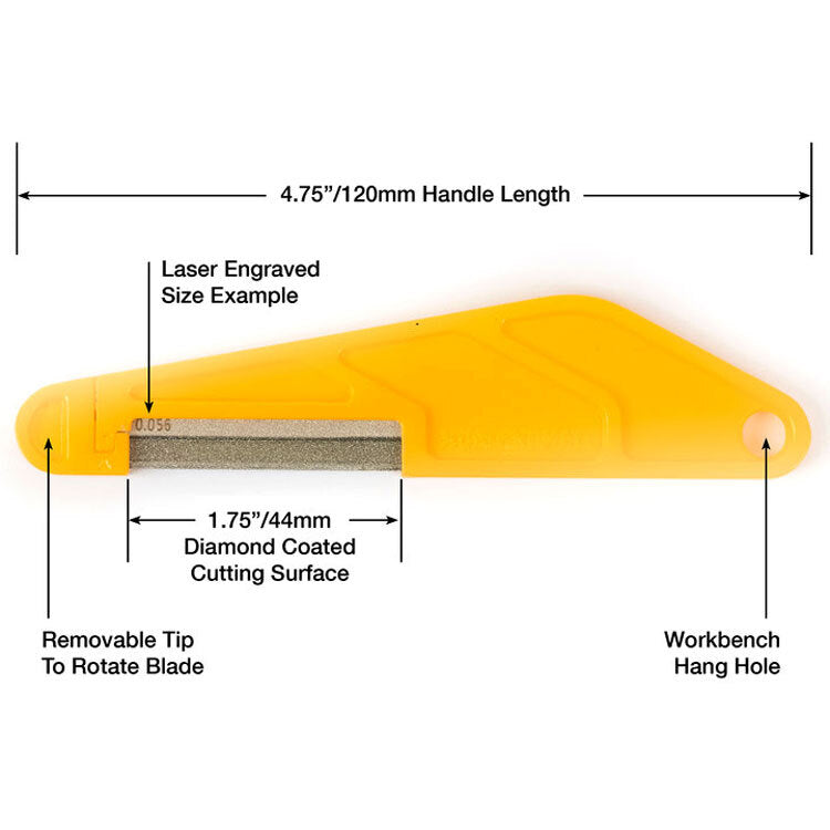 The industrial, even diamond coating cuts all nut or saddle materials such as nylon, bone, graphite & even metals such as brass & zinc. We added an ergonomic handle for total comfort & control of your cut, or you can remove the blade from the handle as an alternative cutting option.