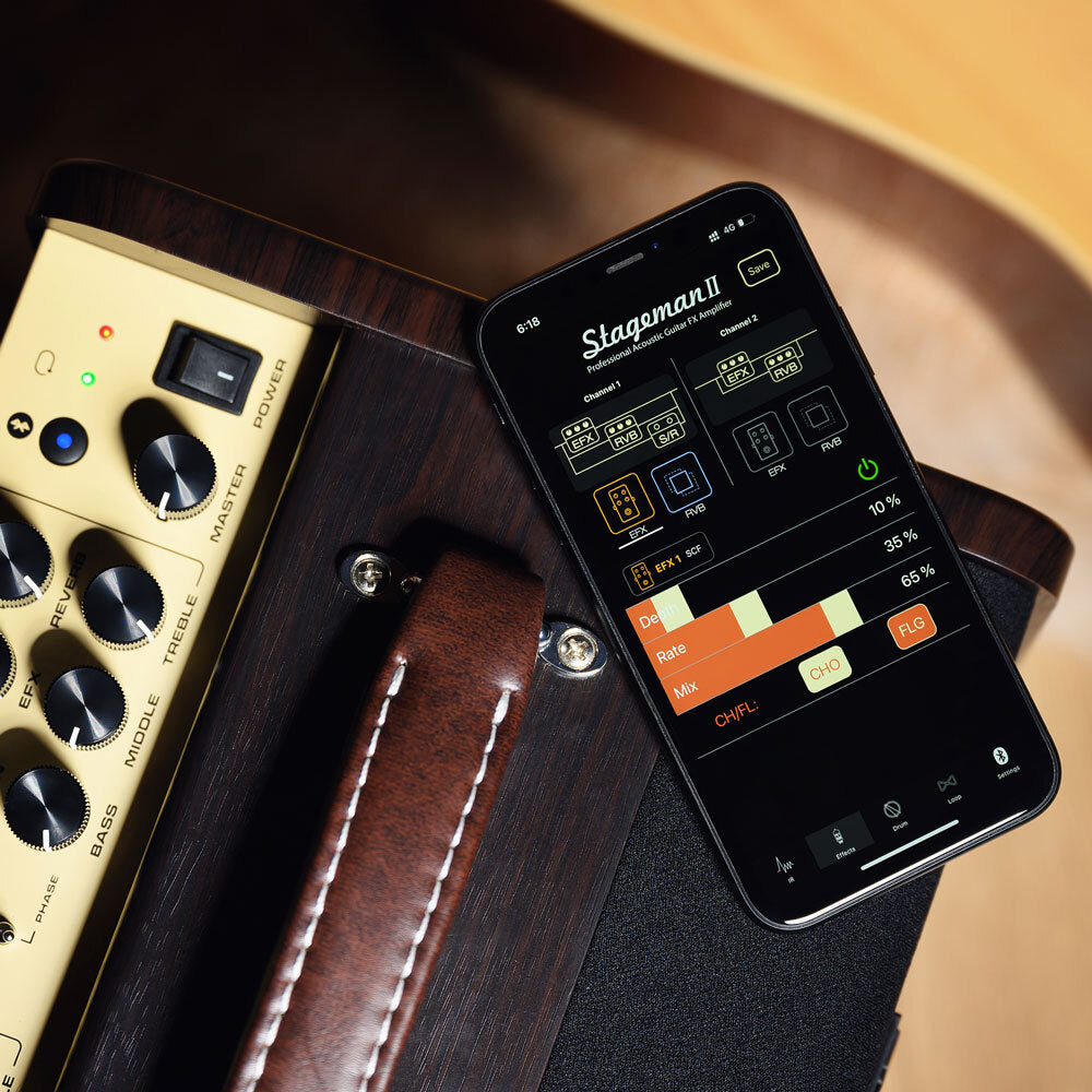The NUX Stageman II rechargeable amplifier is the perfect companion for an acoustic-electric guitar when you want to be able to perform anywhere and be heard loud and clear without having to haul around a bunch of gear. With a large capacity lithium battery, the Stageman II is ready for as long as 4 hours outdoors, performing for any musician.