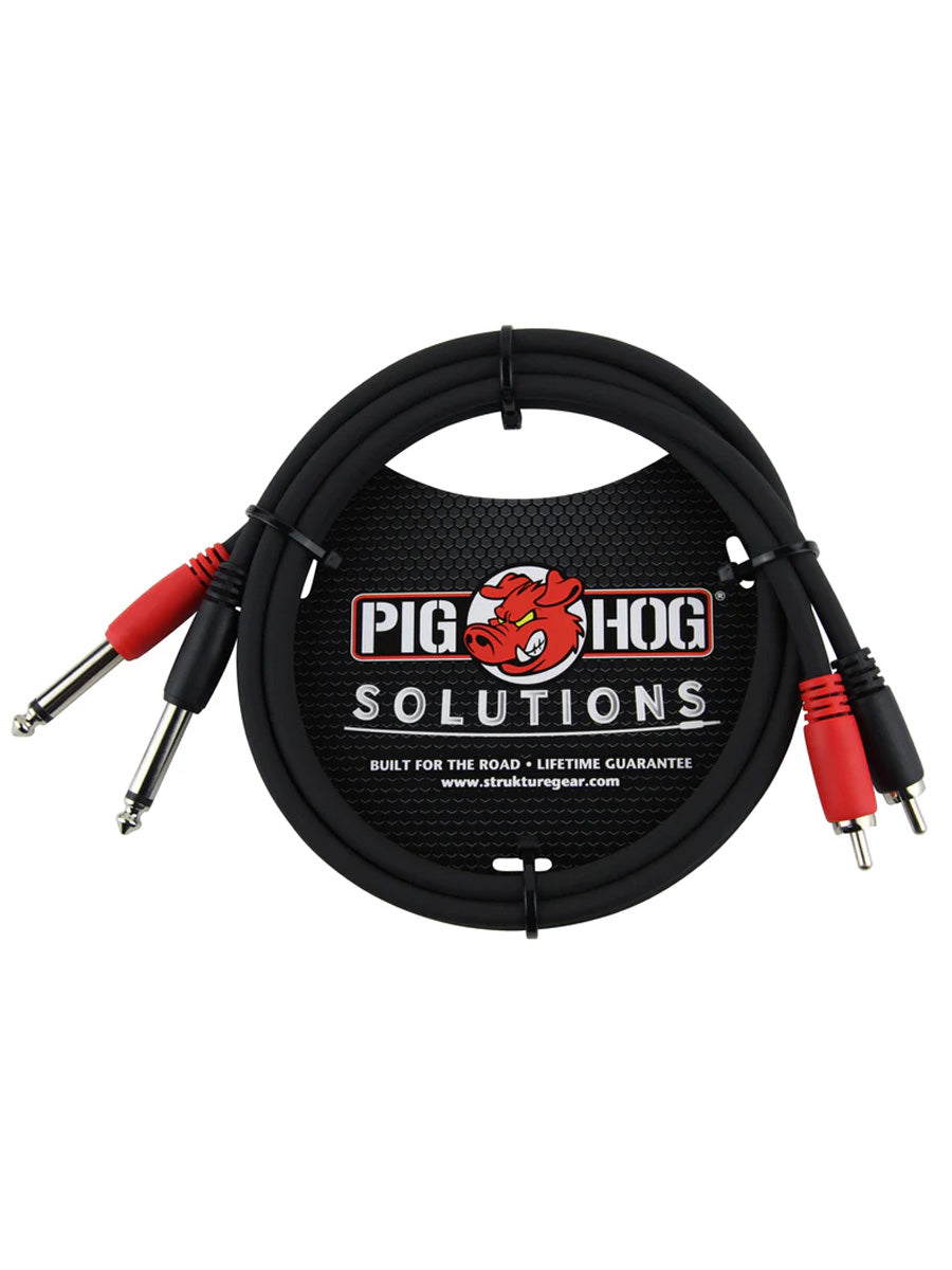 Dual cables are a great way to keep track of stereo signals. Pig Hog dual cables feature heavy duty molded connectors with built in strain relief, color coded for easy identification of Left and Right Channels, and an extra thick tour grade PVC sleeve.