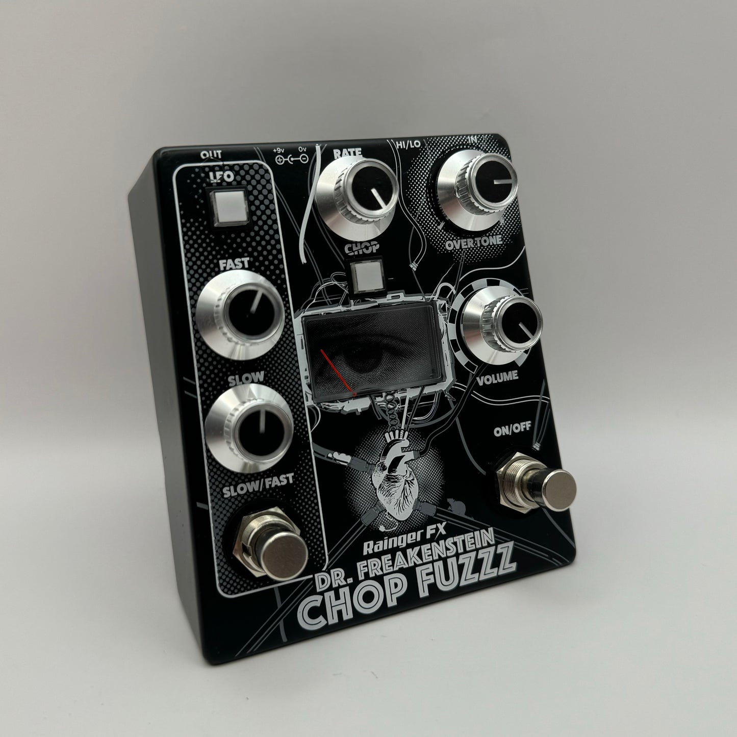 The Rainger FX Dr. Freakenstein Chop Fuzzz is a wild-eyed, all-analog fuzz hybrid, melding gate-sculpted mayhem with dual live modulation, ring-mod-like drone, and expressive Igor control. Tailored for players hunting distortion with dramatic creative control, this pedal lets you colour your fuzz with rhythm, tone, and theatrical flair.