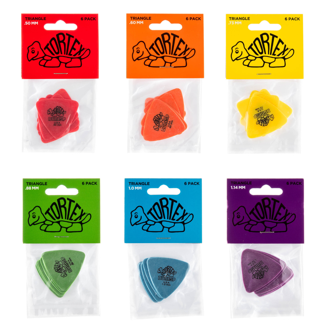 The Dunlop Tortex Triangle Picks (6 Pack) offer a larger gripping surface for extra control and precision. Known for their durability and bright tone, these picks are perfect for players who prefer a firm, reliable feel.