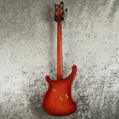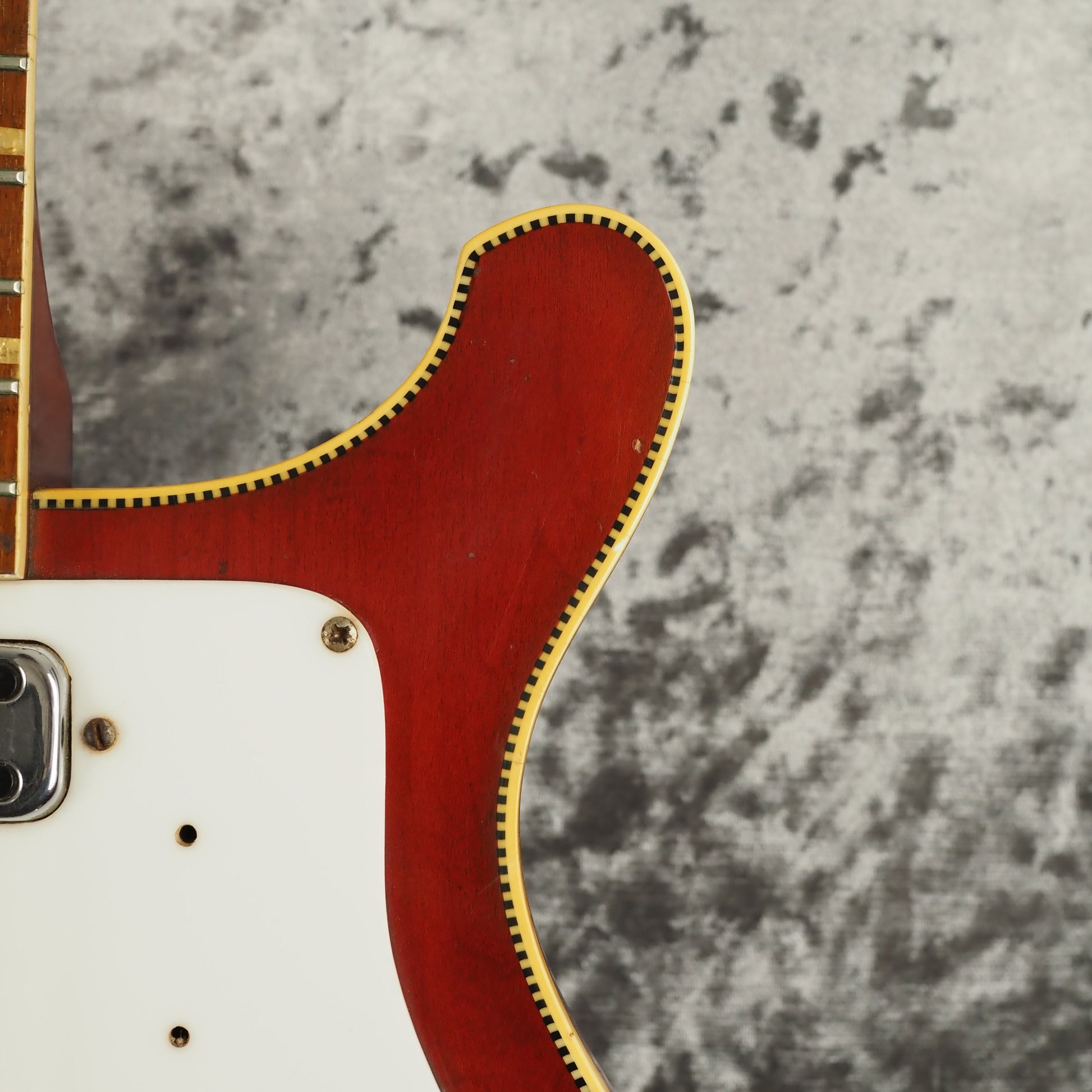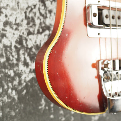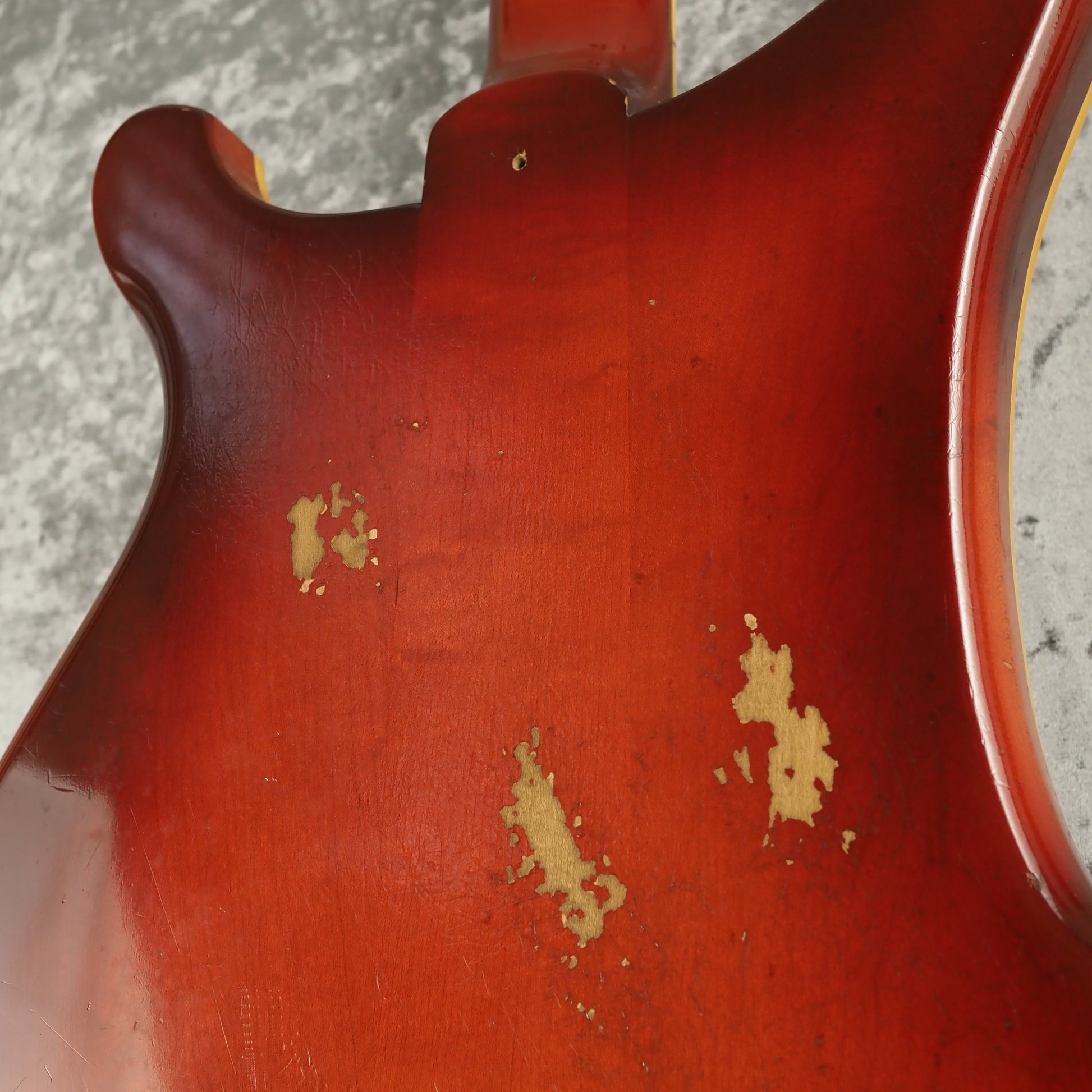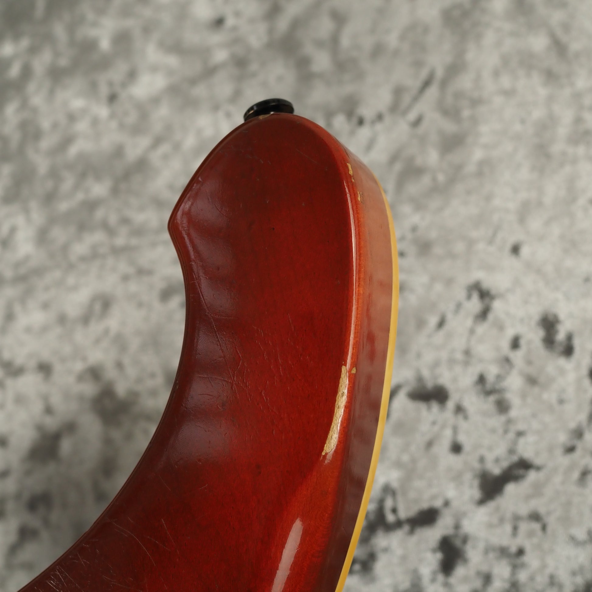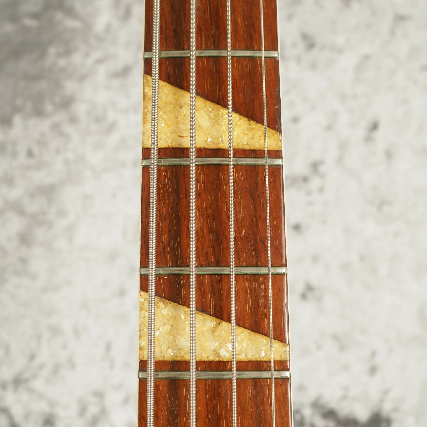 The 1972 Rickenbacker 4001 in Fireglo is a rare and collectible masterpiece, cherished for its bound maple body, dazzling checkered binding, and eye-catching Fireglo finish. It delivers that unmistakable punchy and melodic Rickenbacker tone, thanks to its toaster pickups and long 33‑inch scale, making it a standout choice for discerning bassists and collectors alike.