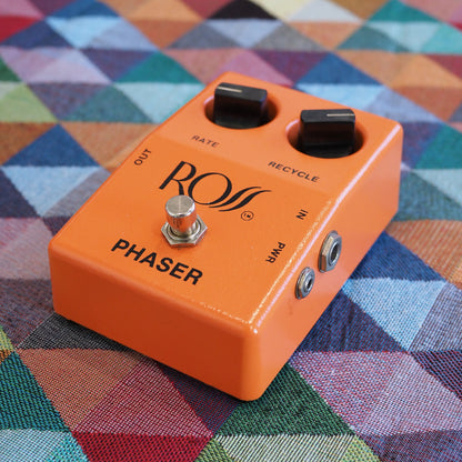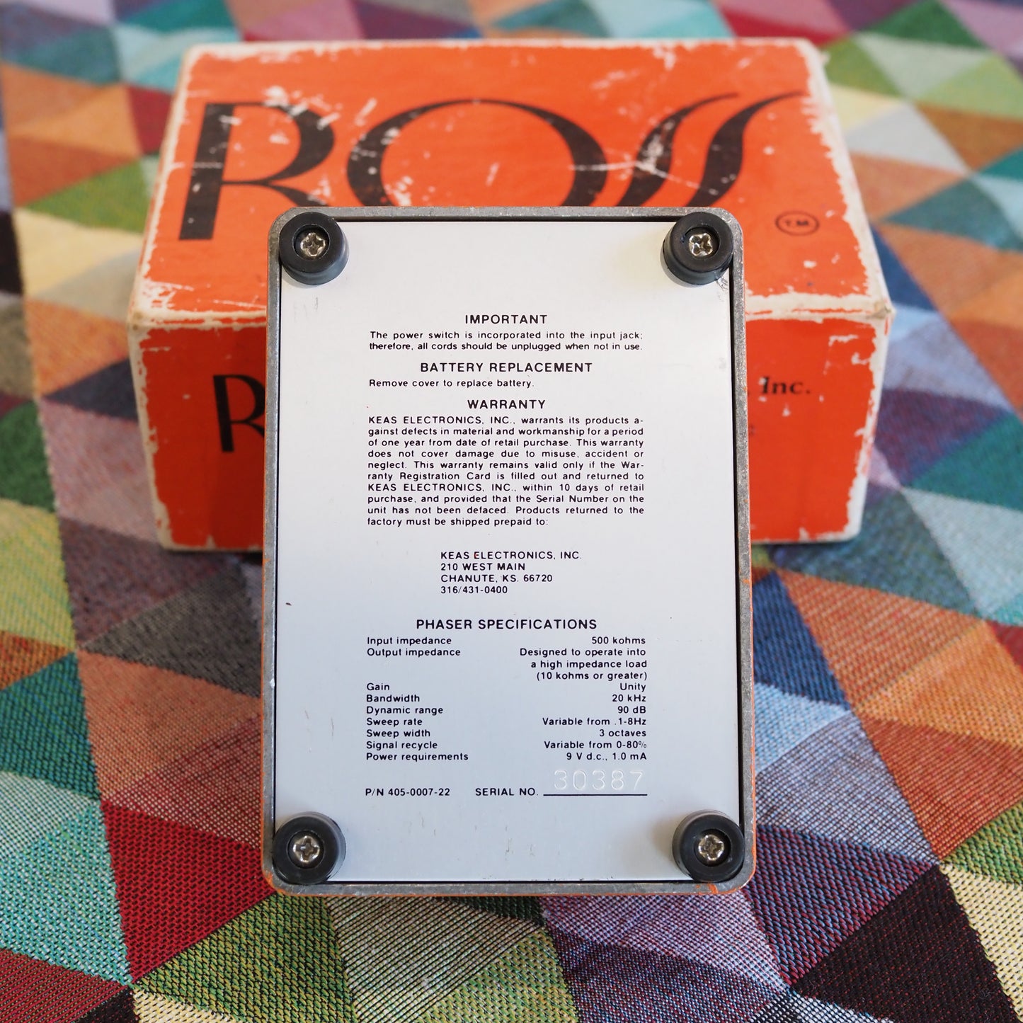 The ROSS R2 Phaser, produced in 1979, is a vintage analog phaser pedal renowned for its warm, smooth modulation and distinctive tonal character. It was part of Ross Electronics' second series of effects pedals, which were manufactured in Chanute, Kansas.
