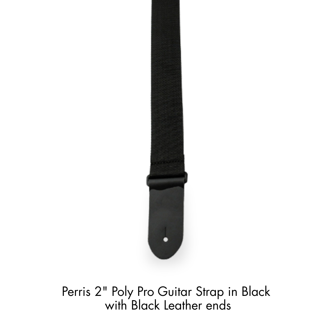 Perris PS6751 2" Poly Pro Guitar Strap in Black with Black Leather Ends