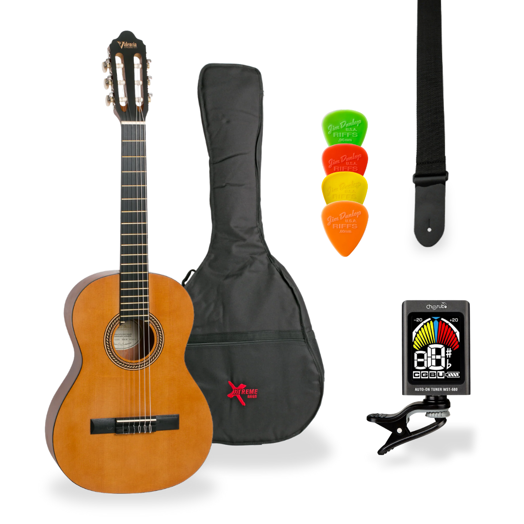 Valencia VC203L Left-Handed 3/4-Sized Nylon String Classical Guitar with Xtreme TB305C36 3/4-Sized Classical Guitar Gig Bag