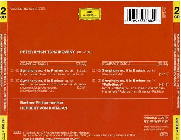 Tchaikovsky - Berliner Philharmoniker, Herbert von Karajan – Symphonies 4, 5 & 6 "Pathétique" (2 x CD, Compilation, Reissue, Remastered)