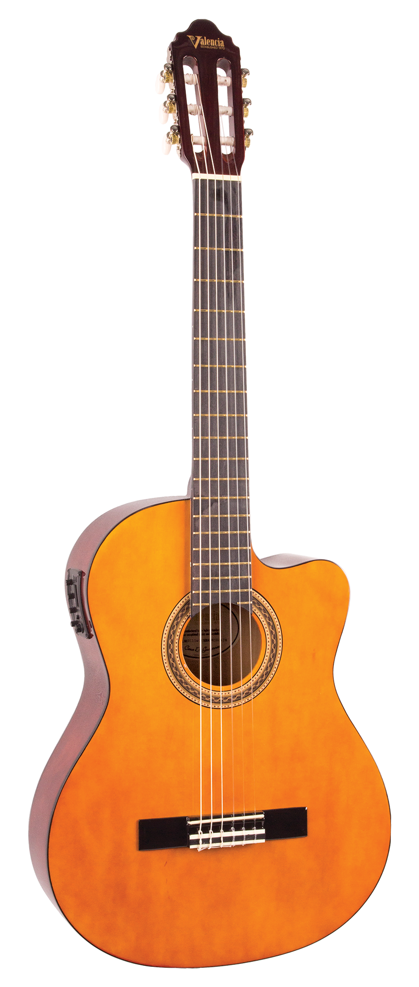 Valencia VC104CE 4/4-Sized Right-Handed Cutaway Electric Classical Guitar in Natural Sunburst