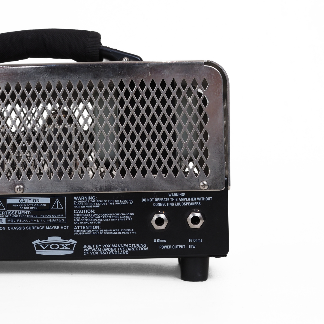 - 15 watts RMS guitar amplifier head with switchable output levels (full/low wattage) for bedroom, rehearsal, or stage