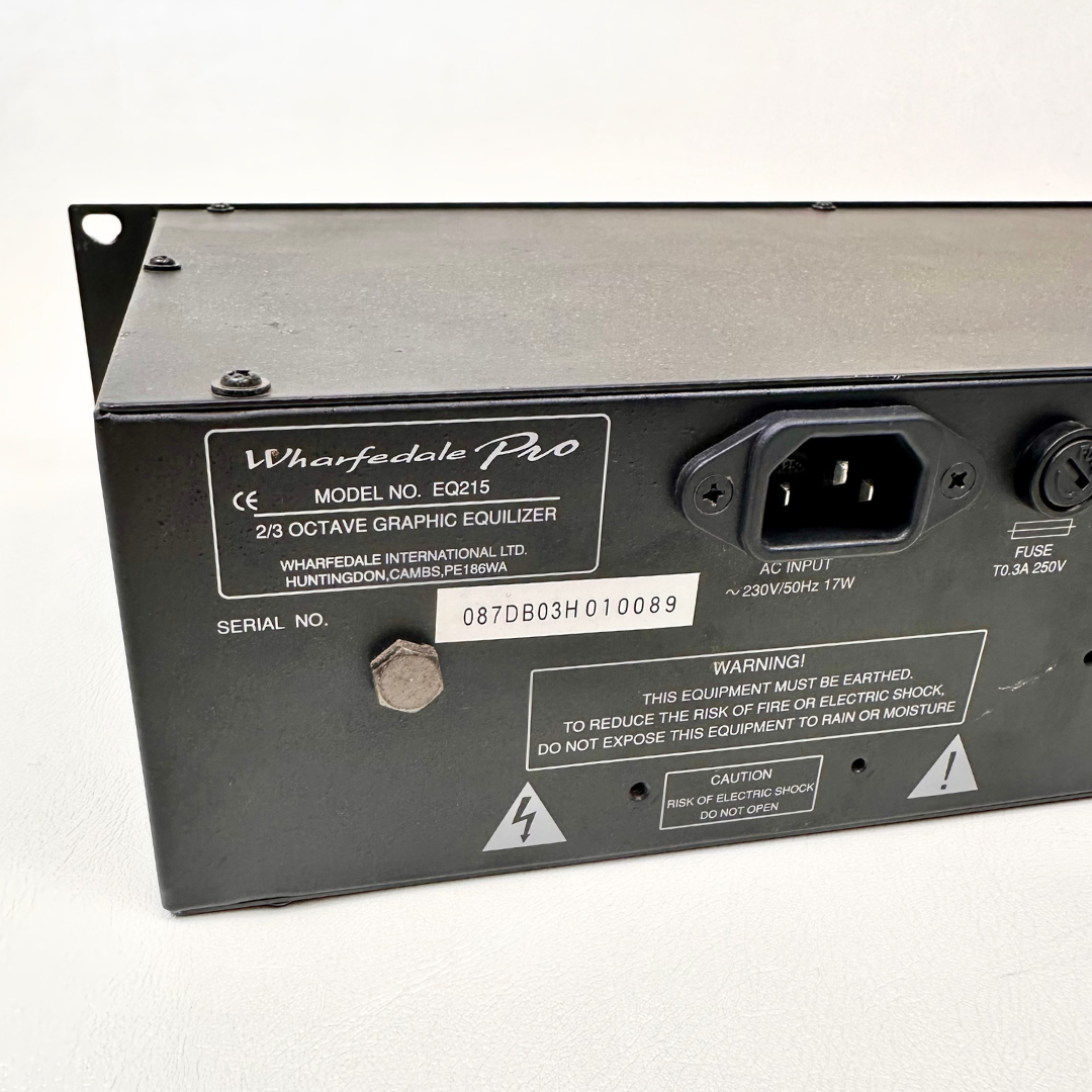 The Wharfedale Pro EQ‑215 is your go-to for dialling in pro-level clarity and squashing sonic mud. Featuring two channels of 15-band 2/3-octave EQ with switchable ±6 dB/±12 dB boost/cut and constant-Q filtering. Perfect for live sound techs, studio rigs, and anyone who loves tweaking frequencies more than their coffee order.