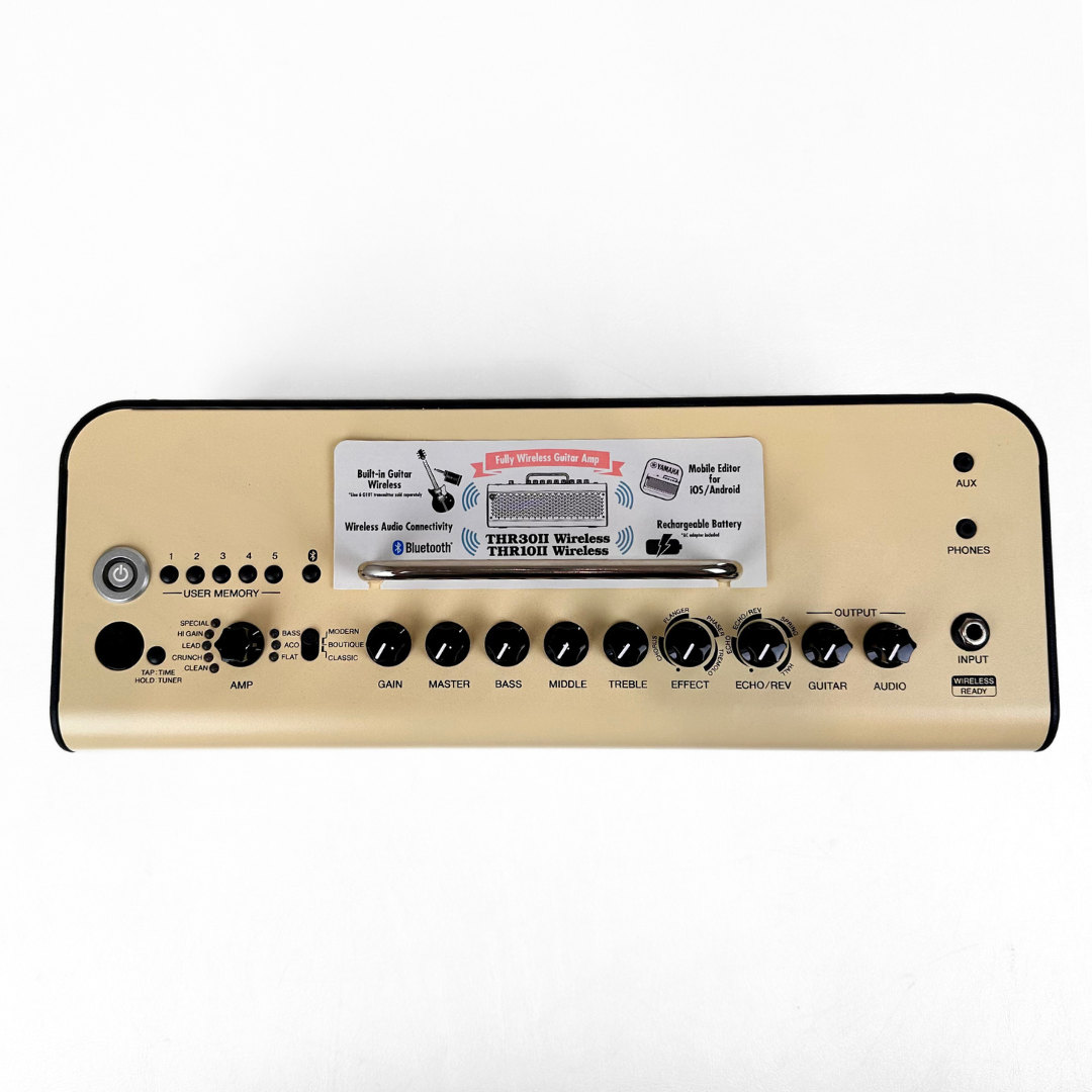 The Yamaha THR30II Wireless delivers authentic amp tones, built-in effects, and premium Bluetooth connectivity in a compact desktop format made for home players. With wireless operation, dual speakers, and a wide range of classic and modern amp voices, it offers a powerful yet convenient practice and recording solution. Its smart design and impressive sound make it a standout choice for musicians wanting versatility without the bulk of a traditional amp.